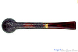 Slim and sleek, this sandblasted chimney billiard from Bill Shalosky has his trademark gleaming finish that pops red when in direct sunlight. A tall bowl with a cylindrical chamber provides plenty of room for long sessions and the tapered brindle stem, with a wide insert of black and white ebony, is given a nod to the old shapes with lines that never quite get completely straight. Even at almost six inches, this American handmade is remarkably light and makes for an all-day clencher worthy of a favorite spot in any rotation.
