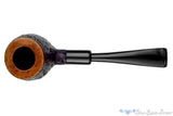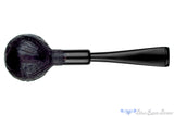 A dark black blast graces this ebonite ferruled apple handmade from South African pipemaker, Jan Pietenpauw. Fitted with a military mounted stem and left smooth and polished across the broad rim of the thick walled bowl, this lightweight smoker has a slightly tapered chamber just wide enough to take a favorite English, Balkan, or Lakeland blend, but not so wide as to ignore burleys and aromatic blends as well.