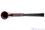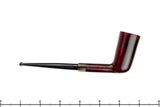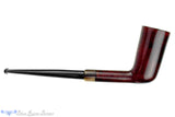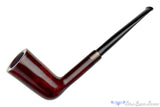 Easily identifiably by the clean lines and functional form, this elegant handmade Arne Jacobsen pays homage to the famous Danish architect and furniture designer who enjoyed worldwide success and this elegant pipe shape. Finished smooth in a deep and dark, rich cherry tone showcasing dense cross-grain up the tall and canted bowl, this horn adorned smoker has a beveled rim and a conically shaped narrow chamber perfect for a straight Virginia or Va/Per blend, even a shag cut, though the draw is so smooth, any inherently sweet blend will do quite nicely in this comfortable and lightweight clencher.