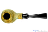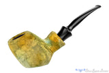 Finished with the acid technique he picked up from hanging out in Germany with the Blue Lobster Pipes contingent led by Roger Wallenstein, this driftwood sitter has a dose of several color tones. Like a montage of autumnal inspiration, this rugged and organic smoker is also a firm sitter and features a wide cylindrical chamber and a crown saddled stem. A far variation from the traditional finished pipes, this singular smoker has the same excellent engineering resulting in an open and smooth draw that makes it a workhorse of a smoker.