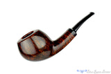 Richly finished with a high contrast and auburn hued straight grain orientation that wraps around the entire stummel, this tremendously beautiful piece from Alexander Sokolik is a juggernaut of detail. The slightly rounded panels on each side of the shank give this stout piece a degree of litheness not easy to achieve. With a wonderfully rounded rim, showcasing no small amount of birdseye, the top of the bowl domes to a perfect bevel - not too little and not too much. A museum quality piece destined to be a treasured heirloom for many generations.