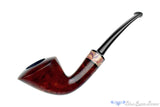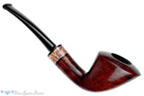 Smoothly finished and given a deep and dark color, this densely grained bent and flared shank yachtsman handmade from Bruno Nuttens has a long stem and a saddle with a limited edition brindle insert. Rounded over the rim with a broad wall and a narrow and conical chamber, this lightweight handmade from France will be effortless to keep clenched and begs for the sweeter Virginias, ribbon cuts, and aromatic favored blends.
