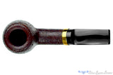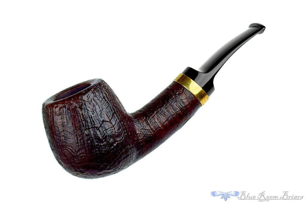 Beautifully finished with a tight and detailed sandblast and a rich, burgundy tone, this muscular and thick walled C. Martin bent billiard from American pipemaker, Chris Mattioda, is further enhanced with an eye popping band of brass. The minimal saddle and the exquisite shape of the plump bowl keep this smoker at just the right proportions. The cylindrical chamber is just wide enough that and broad leaf, English, or favorite Latakia laden blend will reveal all its flavorful secrets, though any tongue friendly blend will be enjoyed with such a smooth and easy draw.