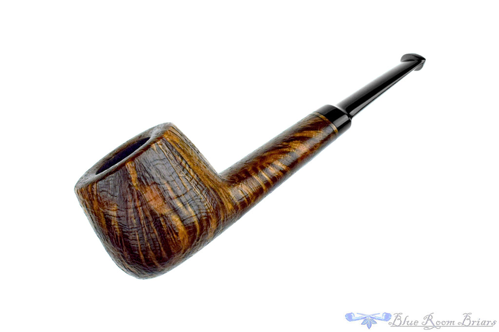 This American handmade from C. Martin Pipes, by Chris Mattioda, has been given a tight sandblast with a contrasting finish. Both the straight grain and growth rings are present to showcase the excellent specimen of briar shaped into a fetching and functional smoker. Wide in the shank to help heat dissipate and thick in the walls of the bowl to keep the ember insulated, this short saddled and rounded rim clencher is sure to be a favorite in any rotation. The cylindrical chamber is an easy target for straight Virginias and even a shag cut or fine ribbon, promising sessions of sipping smoke that is dry, sweet, and satisfying.