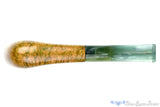 Handmade by an up and coming American pipemaker while experimenting with different finishes, this woodstock estate pipe has a subtle touch of green in the contrast, smooth finish and a matching frosted green acrylic stem. We won't tell you who as they intentionally left their name off the pipe, and we aren't entirely sure it has ever been smoked for the pristine condition it arrived in. Either way, this zulu styled smoker has an oval shank and a narrow chamber for those favorite sweeter blends and even features a smooth draw for a satisfying session every time.