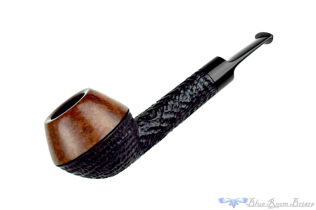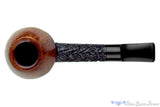 A longer, round shank and a deeper bead around the bowl set this two toned carved rhodesian handmade from Danish pipe maker, Brian Madsen apart.  The striking contrast draws all the attention to the smooth top half of the bowl where there is some minor darkening and the short saddle stem.  The chamber is cylindrical and situated in the sweet spot size for a versatile smoker destined to make any favorite tobacco even more pleasurable in this lightweight clencher.  In excellent condition, this comfortable clencher, complete with original sleeve, has only been lightly smoked and features a fantastic, smooth, and open draw.