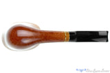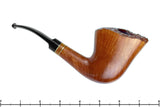 Holy big blocks of beautiful briar, Batman! This Italian handmade Gasparini estate pipe has plenty of straight grain in a naturally contrasting smooth finish to mesmerize anyone close enough to get a good look, and with the size of this smoker, that can be from some distance. Covered with plateau across the elongated rim and replaced and refitted in our own workshop, this gigantic bowled bent briar still has its original stem insert of brass and briar. The chasm of chamber is very deep with plenty of room for any tongue friendly blend, though several hours will need to be set aside to finish the entire smoke in one session. In excellent shape with just some modest darkening along the rim and a few very minor handling marks.