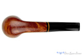 Oldrich Jirsa is a Czech Republin pipe maker that has paid homage to the older French influence with this brilliantly bent and balanced egg estate pipe. Finished smooth, this handmade has a thin strip of what is most likely boxwood inserted into the tapered and bent stem of ebonite. The tall and cylindrical chamber has been charred about halfway down so a sodium silicate bowl coating has been added to ensure no more issues in its future. Framed with birdseye on both sides of the bowl, this bent and smooth beauty is cross-grained and makes a for a suitable companion when long smoking sessions are sought out.