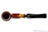 Lengthy and decorated with portions of spot carving, an acrylic ferrule and a replacement stem from our own workshop, this Joby Unicorn estate pipe has a lot going on. There is some significant darkening across the broad rim on top of the very wide and cylindrical chamber. An excellent choice for large cuts and stuffed coins and flakes, this bent briar has a flattened bit which makes clenching easy for such a hefty smoker.