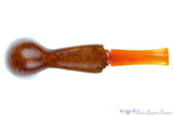 Massive and thick in the wall, this American-made dublin freehand estate pipe has a lot of meat on the bone. The chamber is drilled cylindrically and is particularly wide and deep for a capacious smoker that can keep any pace satisfied for a good long while. Densely grained and finished smooth, this JSP does have a few flaws in the finish but draws smooth and promises plenty of insulating between the ember and fingers. This acrylic stemmed and slightly bent freehand is in excellent condition.