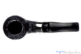 For this Deluxe Edition estate pipe of the famous 999 rhodesian from Peterson's catalog, the finish has been dressed up in a deep sandblast with a great deal of sheen. Banded with nickel and fitted with a traditional fishtail stem, this black Irish saddled beauty has a wide chamber suited for the enjoyment of broad leaf and those Latakia laden favorites. Bent enough to be a comfortable clencher, this Dublin Edition smoker also boasts a marvelously smooth, open draw.