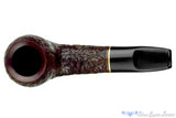 Not much larger than a nosewarmer, but still adept with a chamber large enough to enjoy a favorite Balkan or Lakeland blend's complexity, this Savinelli Lolita estate pipe has thicker wall toward the top of the chamber where fingers are most likely to grasp it. On the other hand, this saddled smoker from Italy makes for a comfortable clench and all day companion. Fitted with room for a 6mm filter, though not necessary for a great smoke, this brass trimmed smoker does have some handling marks around the smooth rim but is still in great shape.