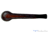 A large bowl sits at the end of a lengthy and oval shank with seams running all the way down the sides to give this slim profile Savinelli Punto Oro King Sized canadian estate pipe a bit of decorative trim and a polished style. The sandblast finish has an undertone of dark red that peaks through when in direct lighting and the result is a slightly weathered look that speaks of age beyond actual years. Unfortunately the original stem didn't survive restoration so we have fitted it with a new one made of ebonite and tuned the draft to be an amazing smoker. The wide chamber is conical and will be an excellent host for both English and Balkans laden with Latakia as well as a burley burning monster.