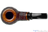 A real handful, this handmade cannonball estate pipe from American pipemaker, Todd Harris is definitely a handful and will not work as a clencher. The magnificently large bowl is topped with a smooth and rounded rim while the big, meaty and bent shank is finished smooth as well. The saddle stem is made from acrylic to avoid any oxidation and the whole thing weights just under a quarter pound. The payoff for all that heft is a truly impressive chamber of cylindrical geometry drilled all the way to the bottom for an unparalleled long session smoker that never gets too hot to hold. In excellent condition with just a touch of inner rim darkening.