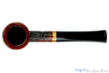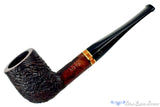 This straight billiard of jaunty virility from Alpha's Nobility series has only a degree or two of cant to the forward slope of the rim, while the bowl is proudly upright and erect at the transition.  With a delightfully tactile and detailed blast to accentuate the grain and growth rings inherent to the wood, the addition of some color sandwiched between brass rings is a nice touch too.  In excellent smoking shape though the rim has been slightly darkened with use and there are some handling marks on top of the bowl as well.  This good looking and easily clenchable walking companion does have room for a 6mm filter and comes with a fitted adapter for those who prefer a standard draft.