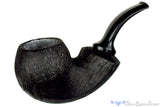 Very compact, this driftwood finished pipe from Benjamin's workshop in Germany features a marvelous reverse calabash reservoir between the tenon and the draft at the bottom of the mortise. This generates a dryer smoke and is especially cool on a pipe this small - practically a nosewarmer. The texture of the finish is a result of the driftwood technique, allowing the holder to literally feel the grain and not just see it. All black and very organic, as if artisan pipes just float in off the ocean and can be picked up at shorelines everywhere.