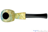 Ron Smith is one of a handful of American artisans actively using the driftwood finish, and on this pipe, that was an excellent choice. For as small and light as it is, this blowfish conceals a fairly large chamber while maintaining good wall thickness. The tie-dye like effect of the driftwood finish only accentuates the well oriented grain pattern.