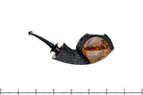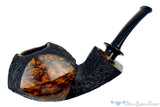 Nuanced and astoundingly detailed, David has managed to get no less than 5 panels into this reverse flaring shank, and 13 into the piece as a whole. A mind numbing enterprise for any craftsman, this kind of symmetric and meticulous construction is what pushes Mr. Huber to the top of his class. Cross grained and revealing long winding rings of the briar's growth, this stunning bull fish full of distinctive details, also happens to have a perfect draw and a hand tuned draft for passing a cleaner with ease. As is common in David's work, no detail has been spared his careful and masterful touch in bringing this unique specimen to life.