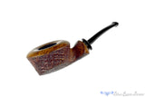Wide in the stummel and luxuriously thick in the wall construction, this tan blast dublin from American professional pipe maker, David Huber, features a detailed and ring revealing sandblast capped with a broad, smooth, and marvelously rounded rim. The shank is flared out on both sides and the mortise has been carefully reinforced with a brass tube sleeved into the wood. Perfect for virginias and shag cuts of tobacco, this paneled handmade is light and though small in scale, isn't short of sculpted brilliance and smoking prowess.