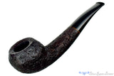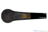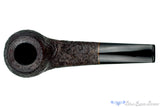 Tapered with a wide, thick shank, this speeding tomato, or "racing rhodesian" as some prefer to call it here at the Blue Room, is distinctly finished in a tight blast of undertone and as close to black as you can get without actually getting there. When in direct sunlight the lighter tones of chocolate, maroon, and deep burgundy are present, but this dark smoker hides its tonal secrets well. Bent just enough to clench without trouble, Jerry made sure to keep as much briar intact in the shape without getting sloppy, creating a muscular flex to the elegant profile. Superbly drilled, as expected, this easy smoker doesn't have a deep chamber, but certainly wide enough to enjoy any blend worth savoring in a slow sipping pace.