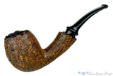 A magnificent tightly packed and distinct ring blast graces the stummel of this sizable egg from Jerry Crawford. Finished with rusty tones of ochre and whiskey browns, this flared saddled smoker has been painstakingly balanced give the eyes wonderfully flowing lines that work in concert. Not overdone, but just enough to know that this solid pipe will be as lovely to smoke as to behold.