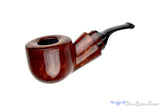 Fascinated and perhaps obsessed with calabash and their reverse designs, these Johny Pipes from Iranian pipe maker, Meysam Jahani are marvelous celebrations of the latter. Each has a reservoir for the smoke in the wide short shank and a sizeable bowl for enjoying dry, sweet, and flavorful smoke no matter the pace or what tobacco type is used and makes for a comfortable clencher. Fitted with an insert of briar in the acrylic stem and set with a delrin grommet to secure the tenon in a snug fit that will never wear out, each of these briars is handmade, polished smooth to showcase its grain, and will produce a perfect smoke every time. This Reverse Calabash is shaped into a pot and features a rounded rim atop the very thick walled bowl.