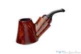 Fascinated and perhaps obsessed with calabash and their reverse designs, these Johny Pipes from Iranian pipe maker, Meysam Jahani are marvelous celebrations of the latter. Each has a reservoir for the smoke in the wide short shank and a sizeable bowl for enjoying dry, sweet, and flavorful smoke no matter the pace or what tobacco type is used and makes for a comfortable clencher. Fitted with an insert of briar in the acrylic stem and set with a delrin grommet to secure the tenon in a snug fit that will never wear out, each of these briars is handmade, polished smooth to showcase its grain, and will produce a perfect smoke every time. This Reverse Calabash is shaped into a volcano and features a nicely executed bevel around the bottom of the bowl.