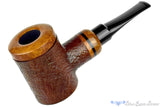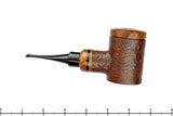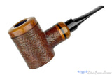 Handmade and designed to be the driest smoker possible, this calabash poker from Iranian pipe maker, Meysam Jahani features a briar bowl seated with a permanent gasket at both the bowl and tenon's connection. The result is a calabash pipe that allows for a reservoir of smoke before being drawn through a tenon wide enough to house a 9mm filter. The design is so functional that a filter isn't really necessary but just in case the option is available. Left smooth at the shank's end and the rim of the removable briar bowl, this handmade has been stemmed with acrylic that will never oxidize and carries a tight sandblast and smooth bottom on which it does sit.