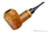 If you are looking for the ultimate dry smoke, Johny Pipes has you covered. Not only is this stout Rhodesian sitter a genuine reverse calabash with a removable cap, the stem can also accept a 9mm filter. While it won't hurt the pipe to forgo the filter, using one in combination with the reverse calabash system is sure to deliver a cool, bone-dry smoke. The hand-cut acrylic stem is thin and comfortable, and the shank end is adorned with another, lighter slice of briar.