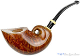Perfectly grained and oriented to the compelling nautilus shape, this Joseph Skoda has a massive amount of birdseye, with the exception of the straight dense grain on both sides sandwiched between the top and the bottom. Large and meant to be held in hand while lit, this gorgeous briar has a large chamber with a draft hole dead center at the bottom. Adorned with two pieces of ivorite, this beauty will smoke just as good as it looks and is likely to be passed on for many generations.