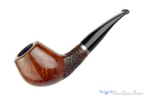 Bent and curved in all the right ways and places, this Ranz Freehand cobra has a shank finished in a carved rustication and a particularly thick walled smooth bowl. The trim adornment is actually acrylic made to look like metal and the acrylic stem will never oxidize with use. The deep and cylindrical chamber is plenty wide enough to support a complex Balkan or smooth English blend, though the draft is so open and smooth, any tongue friendly blend is bound to do well here.