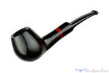 Shiny and smooth, this black morta apple from American pipe maker, Ron Smith is subtly bent and trimmed with a band of red acrylic for a spot of color in this understated and dual toned finish. Wide enough in the chamber for a favorite English or Balkan, burleys and aromatics will definitely do well here too. Classy and just as sexy as a little black dress, this dark smoker draws like a dream and will be the faithful companion every smoker needs in their daily rotation.