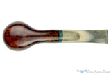 This tall rhodesian from American pipe maker, Ron Smith, is a modern take on the classic with a single bead around the bowl, modest bend, and a muscular profile that honors the ever more popular American style. Finishes smooth in a cross-grain orientation, the acrylic stem is patterned in a horn style that works quite well with the gold specked blue acrylic band and the rich, dark finish of the stummel. Bowl coated in the wide chamber, this bent beauty doesn't need any special treatment to break in and features a smooth, perfect draw for any favorite blend