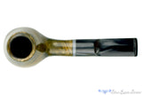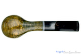 Featuring a unique and multicolored finish, this smooth brandy, or Chris as Ron has named him, has a tonal range from honeyed wheat to steel blue - all a perfect match to the marbled grey acrylic stem and acrylic insert. Beveled at the rim, the walls of this cylindrical chamber are deceptively thick, a perk from this paricular style of shape. Interesting is an understatement, but no less compelling than any smooth pipe, free of fills with tightly packed grain.