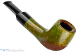 A high-contrast finish of tans and greens graced the thick walled and sturdy shank of this Ranz Freehand round heeled billiard from American carver, Ron Smith. Unique and vibrant, there is an added dimension of tactile delight with a patch of rustication across the bottom of the bowl. Just under five and a quarter inches in length, this stound rounded rim smoker is comfortable in the clench with a wide mouthpiece to offset the touch of heft in the well insulating bowl.