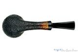 Produced by Danish master Tom Eltang, this Sara Eltang was named after his daughter and represents Tom's efforts to get great smoking and good looking Danish pipes into more smoker's collections. Well blasted with natural growth rings, the shape really takes center stage. Organic and flowing with plenty of meat around the bowl where it will always keep fingers cool, while still being easily clenched. In near pristine condition having only been lightly smoked, this black blasted strawberry comes with the original sleeve.