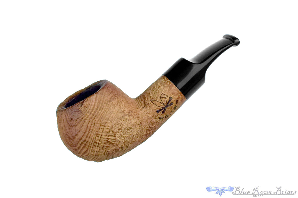 Chris Morgan's Bones series features great shapes with detailed sandblasts given a sans finish by being left in their natural state, like this bent and saddled stout apple estate pipe. Dressed in its birthday suit of natural growth rings and nothing else, this this walled smoker doesn't have a deep chamber but it is plenty wide to take all the nuanced flavors from a favorite Balkan or Lakeland blend. There is some inner rim darkening and with regular use the entire tone of the finish will color with deeper and richer tones. In outstanding condition with an excellent draw.