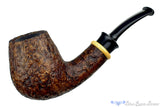 Stunningly detailed, this cross grain sandblasted brandy from Bill is richly finished in a contrast of rich browns and bronze, adorned with a dramatic boxwood ring of golden wheat. While much can be said about the American zeitgeist of shaping, Bill's aesthetic is both singular and at the forefront of the Neo-Danish school. Detailed, thickly proportioned, and tuned to be a phenomenal vessel for tobacco, this palm friendly virginia flake destroyer is another in a long line of tremendous American made briars for the ages.