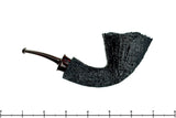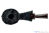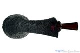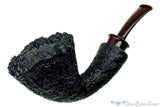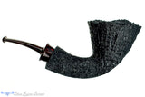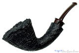 Dark and seriously sandblasted to marvelous and crispy detail, this distinctive freehand from Bill features an Ivarsonesque teardrop shank with a seam that winds it way all the way to the front of the bowl. Saddled with a crown stem of traditional cumberland, this deep chambered smoker will smoke extremely effortlessly and the blistered plateau on the rim is some of the craggiest we've ever seen, testifying to Bill's use of only the very best briar.