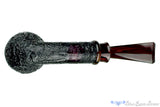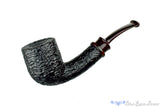 On the smaller side of the scale for American carver, Bill Shalosky, this bent billiard is still rich with detail and tone. Stemmed with traditional cumberland brindle and trimmed with an accent ring of African blackwood that captures the heart of the brindle's coloring, this American styled bent billiard is both understated and refined. Perfect for clenching all day and featuring a chamber sized for getting the very finest flavors from any Virginia blend, this modest packaging of briar is boundless in its smoking potential.