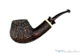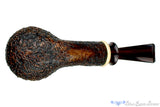 While Bill consistently works with an easy mastery of scale, not all of his pieces are too large to clench, like this well appointed and thick shanked apple. Given a stark and pale ring of mammoth ivory, this cumberland brindled beauty is comfortable both in hand and hanging from the jaw. There simply isn't any comparison to how exacting and well engineered Bill's smokers are as the draft hole and draw are flawless, no matter the genre of tobacco to be enjoyed. The contrast finish and hewn, weathered look only encourage this impressive smoker to be enjoyed on a regular basis with the finest tobacco available.