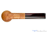 Raw, classic, rough, and sophisticated, this muscular straight and tapered tan blast billiard from American carver, Bill Shalosky, is matched with a cumberland brindle stem. The cylindrical chamber is just the place for a favorite virginia or shag cut tobacco and the lightweight bearing assumes the mantle of a comfortable clencher. Bill's attention to detail, especially the internals of the pipe, are apparent here as this beauty draws like a dream and will be a pleasure to smoke any tobacco from.