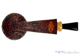 In addition to the compelling shape, this handmade from American pipe maker, Bill Shalosky is dressed in a remarkably textured sandblast finish. A stunning showcase for the richly grained briar block used for the pipe, the adornment of cocobolo woods adds just enough natural wood tones to the rusty colors of the stummel to accentuate without being over the top. Thick in proportion with a long smooth curve of reverse tapered panel along the bottom of the stummel, this wide chambered smoker will be a prized piece no matter how many generations are fortunate enough to smoke it.