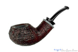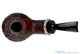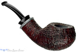 Considerably thick with a small lip on the front of the bowl, this bent sandblast from American carver, Bill Shalsoky, shows off his known prowess for the latest iteration of pipe design. Crowned with a saddle stem, this dark and rich red bent blast is adorned with a ring of fordite and the spectacular decoration is oriented with a sole touch of red positioned at the very top of the shank. Both subtle and detailed, Bill's work is astonishingly finished with the finest engineering available making every smoker from his workshop a blessing for enjoying excellent tobacco generations into the future.