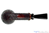 Bill Shalosky's unique variation of the rhodesian, commonly called a Billdesian (sounds better than Rhodosky), is seen here with a deep sandblast and high sheen finish that will only fade after many, many years of constant use. Ringed with a piece of dramatically colored cocobolo, this American handmade is perfectly drilled and won't disappoint any favorite blend's enjoyment. Bent and comfortable enough to keep clenched, this single bided beauty is also a palm friendly companion.