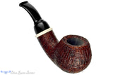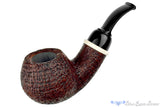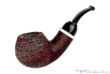Massive and thick walls grace this beautifully blasted bent apple from American pipe maker, Bill Shalosky. The red and rusty toned finish covers a distinct texture of straight grain, though there are growth rings present as well. Adorned with a shank cap ring of Deer Antler for an organic flourish, this stout and bent apple is crowned with a cookie jar saddle and features a wide chamber with a depth that can easily keep a reasonably paced puffer pacified for well over an hour regardless of the moisture level in their tobacco. Bent enough to be comfortable clencher, this palmful of briar is also a pleasure to keep in hand while enjoying any favorite blend.