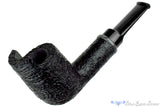 Featuring a raised wall on the front of the bowl to act as a windscreen, this handmade billiard from American pipe maker, Bill Sholosky follows a design from Dunhill before the widespread use of the automobile. Perhaps better described as a breeze screen, the original idea was to accommodate a good smoke at the speed of a horse drawn buggy. Fitted with an shank capped ring of fordite that is brilliantly oriented to the top of the shank and almost completely monochrome, this black blasted and majestic smoker isn't about flashy color, just perfectly proportioned briar with a superb draft and draw.