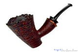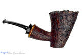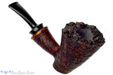 Sandblasted to reveal the tight and consistent grouping of growth rings from the top to the bottom of the large bowl, this handmade sitter from Tennessee pipemaker, Bill Shalosky, is an exceptional specimen of briar. Topped at the bowl with the outer bark of the plateau and capped at the shank with a solid ring of cocobolo, this crown saddled bent smoker provides a deep and wide chamber that cones to the bottom. Ideal for long sessions of English and hybrid blends, this beautifully finished handful of puffing pacification will do well with any favorite blend.