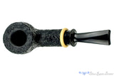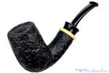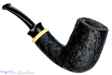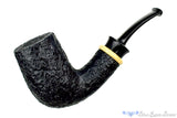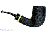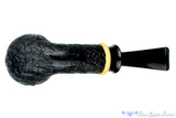 With its head held high, like a confident veteran of burning tobacco bliss, this bent billiard from Bill Shalosky is a whole lot of bowl in a thick and manageable package of detailed black sandblast. Trimmed with a ring of pale boxwood and featuring a round crown saddle stem, this bent is specifically made to be a comfortable clencher and doesn't disappoint. Narrow in the deep, deep chamber, this perfectly drilled smoker is just the thing for long sessions of sweet virginias and va/per blends.