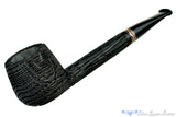 Lengthy and stout, this black morta smoker has been sandblasted to reveal the geometric splendor that can only come from finished bog oak. Adorned with Bill's favorite fordite for a little splash of color, this long and round shanked smoker needs only a little time and a lot of tobacco, and another favorite pipe is born for the ages.